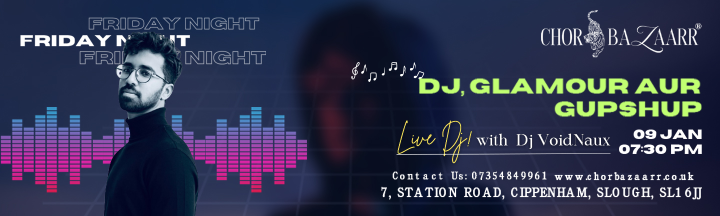 Turn up your Friday vibes at Chor Bazaarr with DJ Glamour Aur Gupshup, a night where music, style, and energy come together! Join us for a live DJ set with DJ Void Naux on Friday, 9th January at 7:30 PM. Get ready for an electrifying evening filled with…