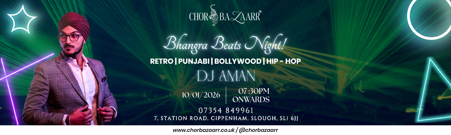 Get ready for a high-energy night packed with rhythm, culture, and nonstop dancing at Bhangra Beats Night! Join us at Chor Bazaarr as DJ Aman takes over the decks with an exciting mix of Retro, Punjabi, Bollywood, and Hip-Hop sounds. Happening on Saturday, 10th January 2026 from 7:30…