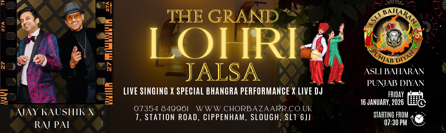 Celebrate the vibrant festival of Lohri with an unforgettable evening of music, dance, and festivities! Date & Time: Friday, 16 January 2026 | Starting from 7:30 PM Venue: 7, Station Road, Cippenham, Slough, SL1 6JJ What to Expect: Live Singing: Enjoy soulful performances by Ajay Kaushik and Raj…