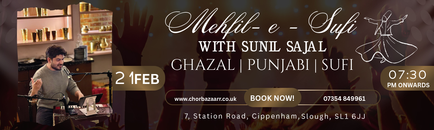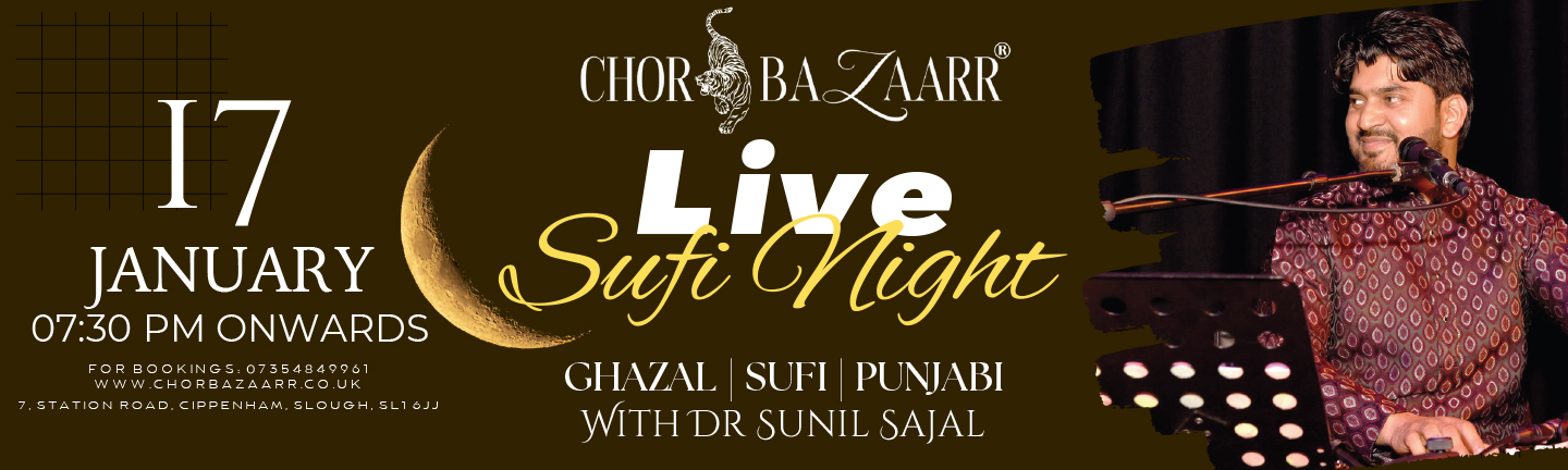 Experience an enchanting night of soulful Sufi music with Dr. Sunil Sajal at Chor Bazaarr. Let the mesmerizing ghazals and soulful melodies transport you into a world of rhythm, poetry, and devotion. Event Details: Date: Friday, 6th February Time: 7:30 PM Venue: Chor Bazaarr, 7 Station Road, Cippenham,…