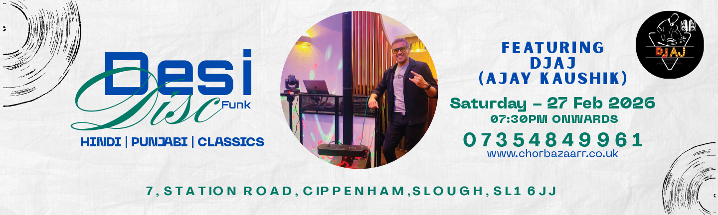 Get ready for a high-energy Desi Disco-Funk night at Chor Bazaarr! Dance to the best Hindi, Punjabi, and classic hits with the incredible beats of DJ AJ (Ajay Kaushik). An evening full of music, fun, and unforgettable vibes awaits! Event Details: Date: Friday, 27th February 2026 Time: 7:30…