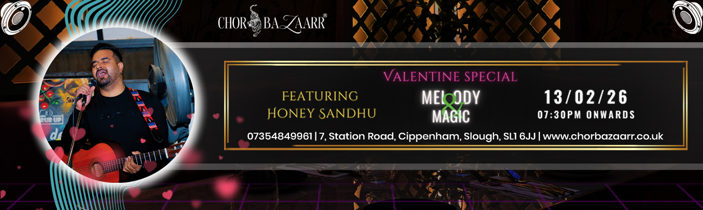 Celebrate love this Valentine’s with an unforgettable evening of soulful melodies and romantic vibes. Honey Sandhu will serenade you with enchanting songs that set the perfect mood for a magical night. Event Details: Date: Friday, 13th February 2026 Time: 7:30 PM onwards Venue: Chor Bazaarr, 7 Station Road,…