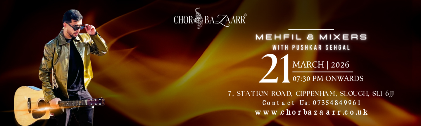 Join us for an enchanting evening of music and mingling at Chor Bazaarr!  Experience live performances by Pushkar Sehgal while enjoying great vibes, food, and drinks. Event Details: Date: Saturday, 21 March ,2026 Time: 07:30 PM onwards Venue: Chor Bazaarr, 7 Station Road, Cippenham, Slough, SL1 6JJ Don’t…
